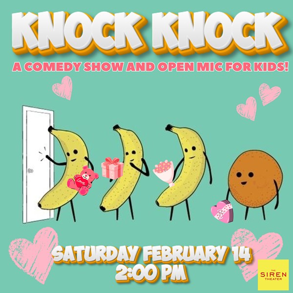 Knock Knock is an all ages comedy show and open mic made for kids, by adults! Bring your kids down to The Siren Theater for an hour of fun and kid- friendly comedy! This show completely sold out the last time, so get those tickets asap!